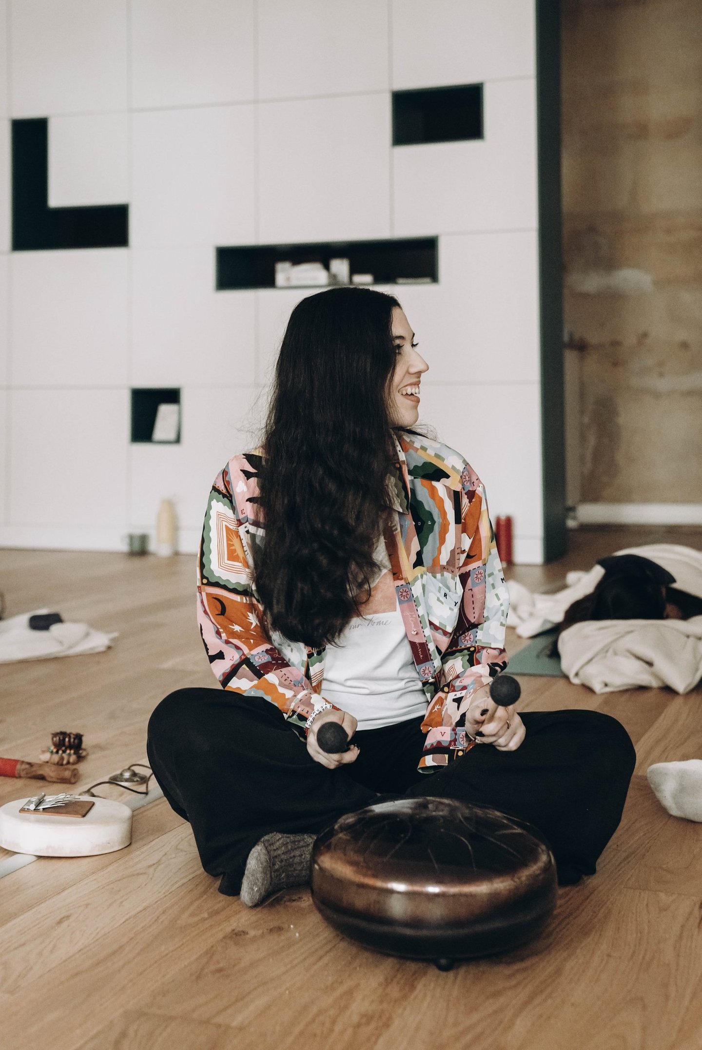 La musique joue un rôle fondamental dans les sessions. Elle est soigneusement construite pour soutenir cette dynamique, en accompagnant le corps à travers différentes vagues d’expérience. Par ses rythmes, ses textures et ses silences, elle crée une structure invisible qui soutient tour à tour l’activation, l’expression, puis l’intégration et l’apaisement. La musique ne dirige pas le corps, elle lui offre un cadre sécurisant pour explorer toute sa palette d’états.